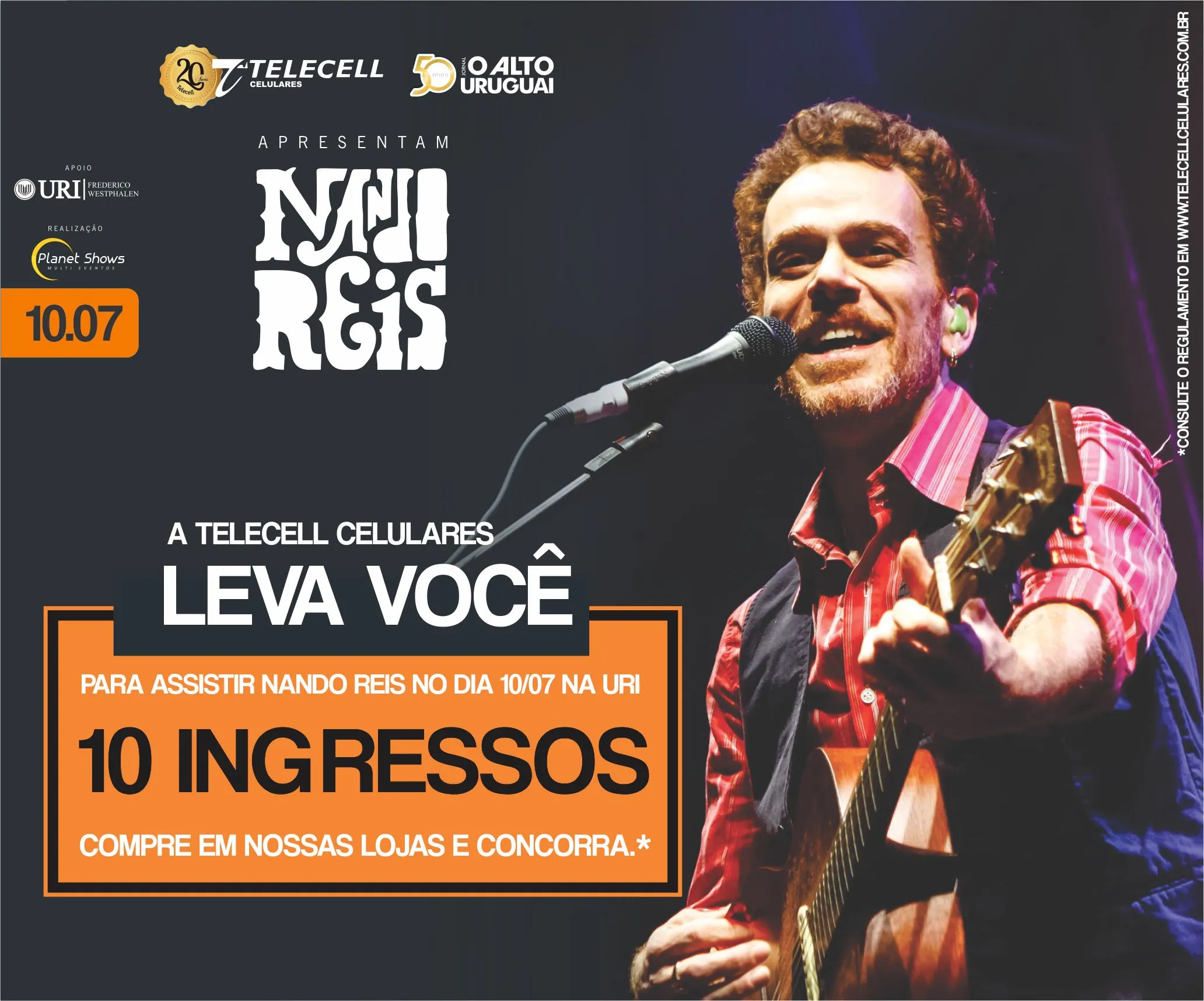 A TELECELL CELULARES LEVA VOCÊ PARA ASSISTIR NANDO REIS